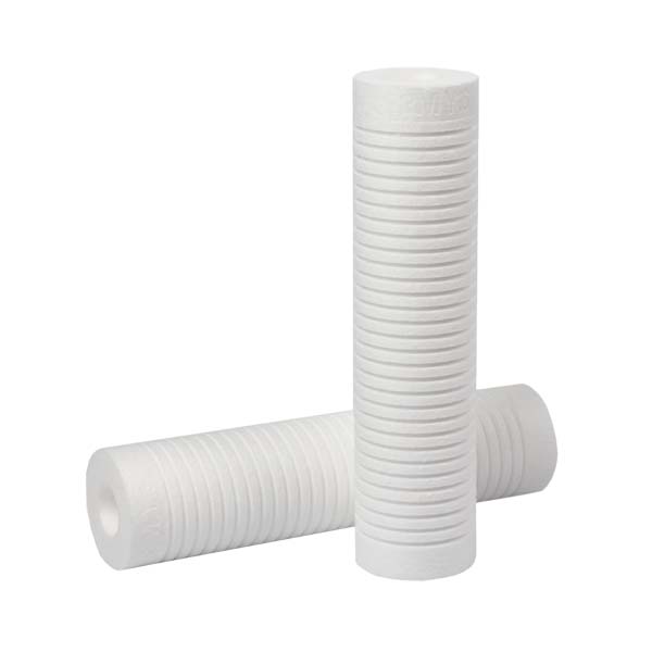 PP棉濾芯采用衛(wèi)生級聚丙烯為原料,經(jīng)過加熱熔融噴絲牽引形成孔徑梯度的深層過濾濾芯,整體一次性生產(chǎn)而成。通量大、價格便宜,常用于液體的預過濾。